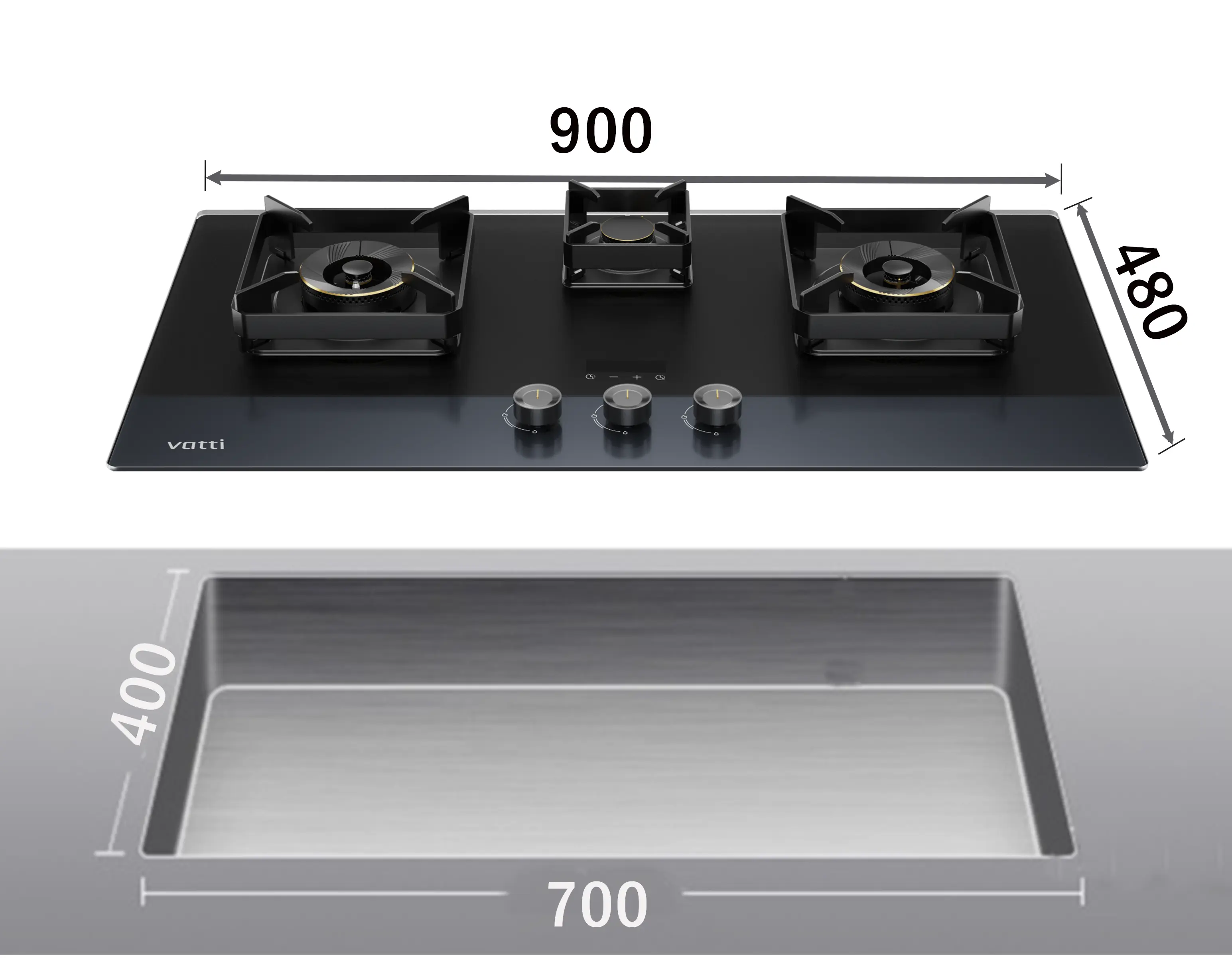 VATTI 3 Burner Gas Hob C830G
